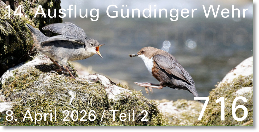 Beim Gündinger Wehr hält sich ein weiteres Wasseramsel Küken in einem Felsspalt auf. Da ist es gut geschützt gegen Räuber, die aus der Luft angreifen.